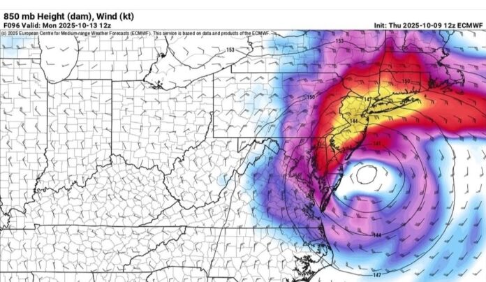 (VINnews) — A powerful coastal storm — a Nor’easter — is expected to impact the Tri-State area beginning Shabbos morning and lasting through Monday, bringing strong winds, heavy rain, and hazardous coastal conditions. The timing is expected to seriously affect Chol Hamoed, Hoshana Rabbah, and Shemini Atzeres, with forecasters warning of dangerous weather throughout New York and New Jersey.