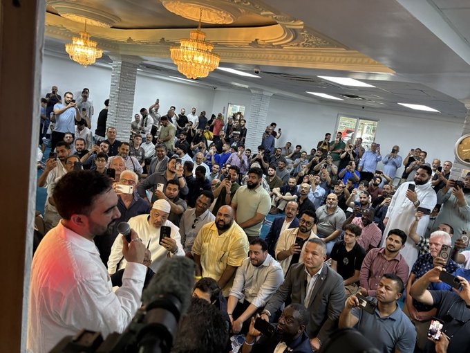 Mamdani attended Jummah prayers and participated in a food distribution event for the annual Somos Day of Service, helping provide meals to local residents. During the visit, he was joined by prominent Muslim figures, including his attorney Ali Najmi, NYC Council Member Yusef Salaam, Assemblymember Charles Fall, State Senator Robert Jackson, and NYIC Director Murad Awawdeh.
