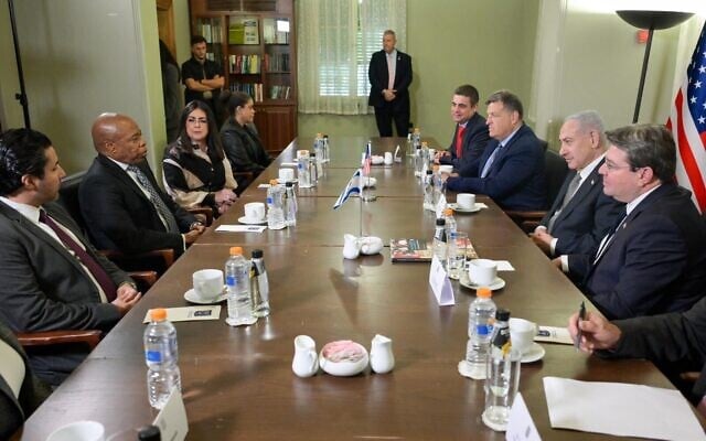 TEL AVIV — Prime Minister Benjamin Netanyahu met on Monday with outgoing New York City Mayor Eric Adams at the Kirya in Tel Aviv, thanking him for his steadfast support of Israel and calling him “a true friend of the Jewish people,” according to the Prime Minister’s Office.