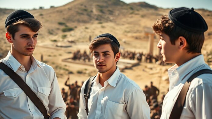 NARRATOR: And so, three bochurim from Lakewood returned from their journey through time with more than just an incredible story. They returned with the three lessons that the Chashmonaim bequeathed to all future generations: We are the Am Hashem, bound by an eternal covenant. Torah is our life, worth every sacrifice. No matter how far we’ve strayed, we can always, always come home.