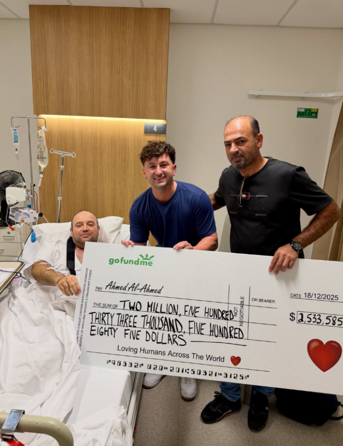 SYDNEY — A man hailed as a hero for confronting a gunman during the deadly Bondi Beach attack has been presented with more than $2.5 million raised by supporters around the world.